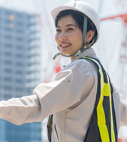 歩行者の誘導や、工事車両の出入りにあわせて交通整理を行います。「お通りください」「止まってください」など、手や声で案内。慣れてくると、周囲への気配りも自然にできるようになります。